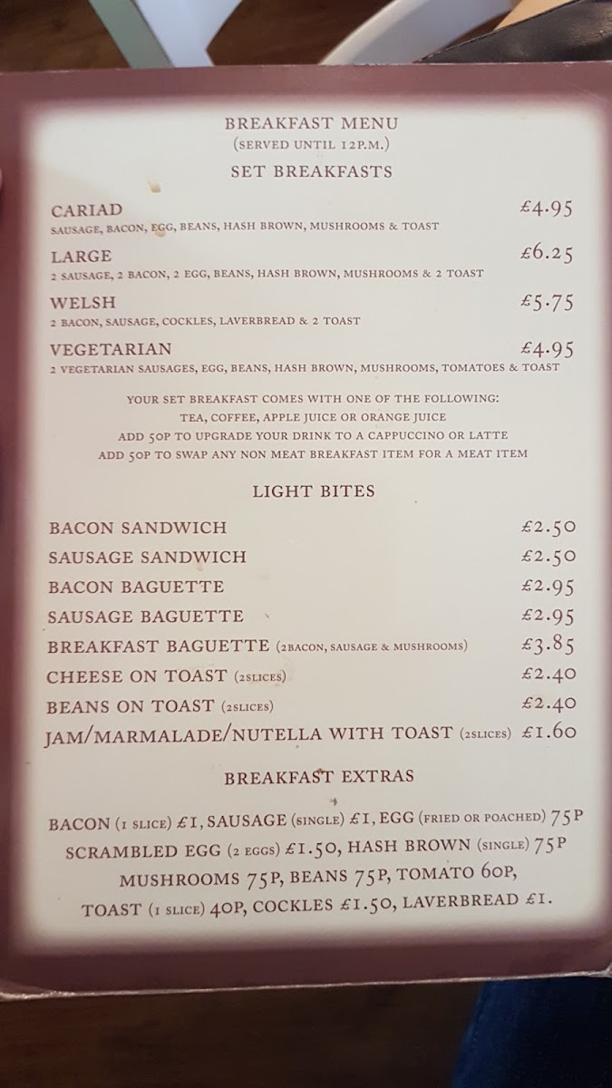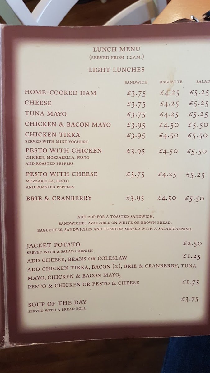 The menu at Cariad Cafe offers a delightful selection of beverages and light lunches. For coffee lovers, there are options such as Americano, Cappuccino, Flat White, Latte, and Machiato, perfect for a quick pick-me-up. If you're in the mood for something lighter, the cafe serves a variety of home-style sandwiches, including Home-Cooked Ham, Cheese, Tuna Mayo, Chicken & Bacon Mayo, and Chicken Tikka. There’s also a comforting Jacket Potato and the ever-popular Soup of the Day for those seeking something warm and hearty. With a range of delicious choices, Cariad Cafe offers a cozy spot to enjoy simple, wholesome meals.